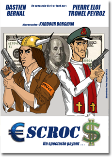 Les Escrocs Parce que les escrocs sont partout... Et parce qu'ils ont toujours été... €scroc$ est un spectacle où l'on parle escroquerie, on chante escroquerie, on rit escrocquerie... Un spectacle d'escrocs, fait pour des escrocs et joué par des escrocs. C'est drôle... surtout quand ça arrive aux autres ! Préparez vos zygomatiques et cachez vos portefeuilles !! Avec : Bastien Bernal, Pierre Eloi Tronel Peyroz Mise en scène : Kaddour Dorgham _______________________________________________________ Lieu : Café Théâtre Le REPAIRE - 2 place des Capucins - 69001 LYON Horaires Décembre : Jeudi 22 à 20h Vendredi 30 à 20h Tarif unique : 11 € pour tous _______________________________________________________ Infos et réservations : 04 82 31 68 02 ou contact@lerepairelyon.com Sur les sites : www.billetreduc.com www.soireespectacles.com www.cityvox.fr |